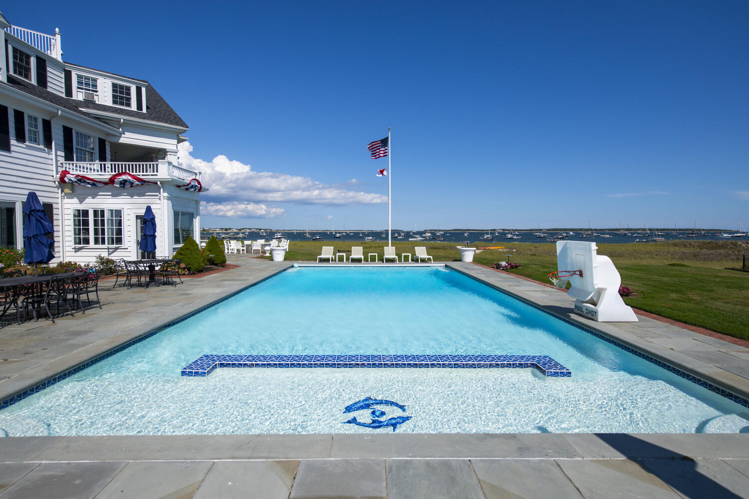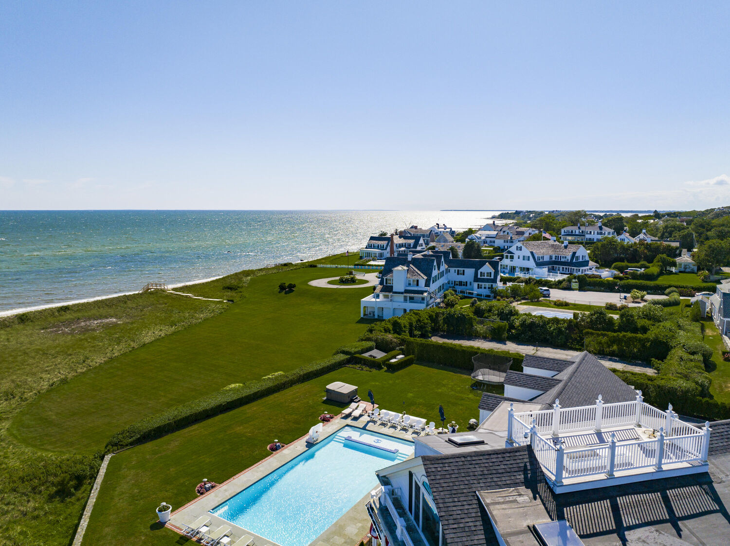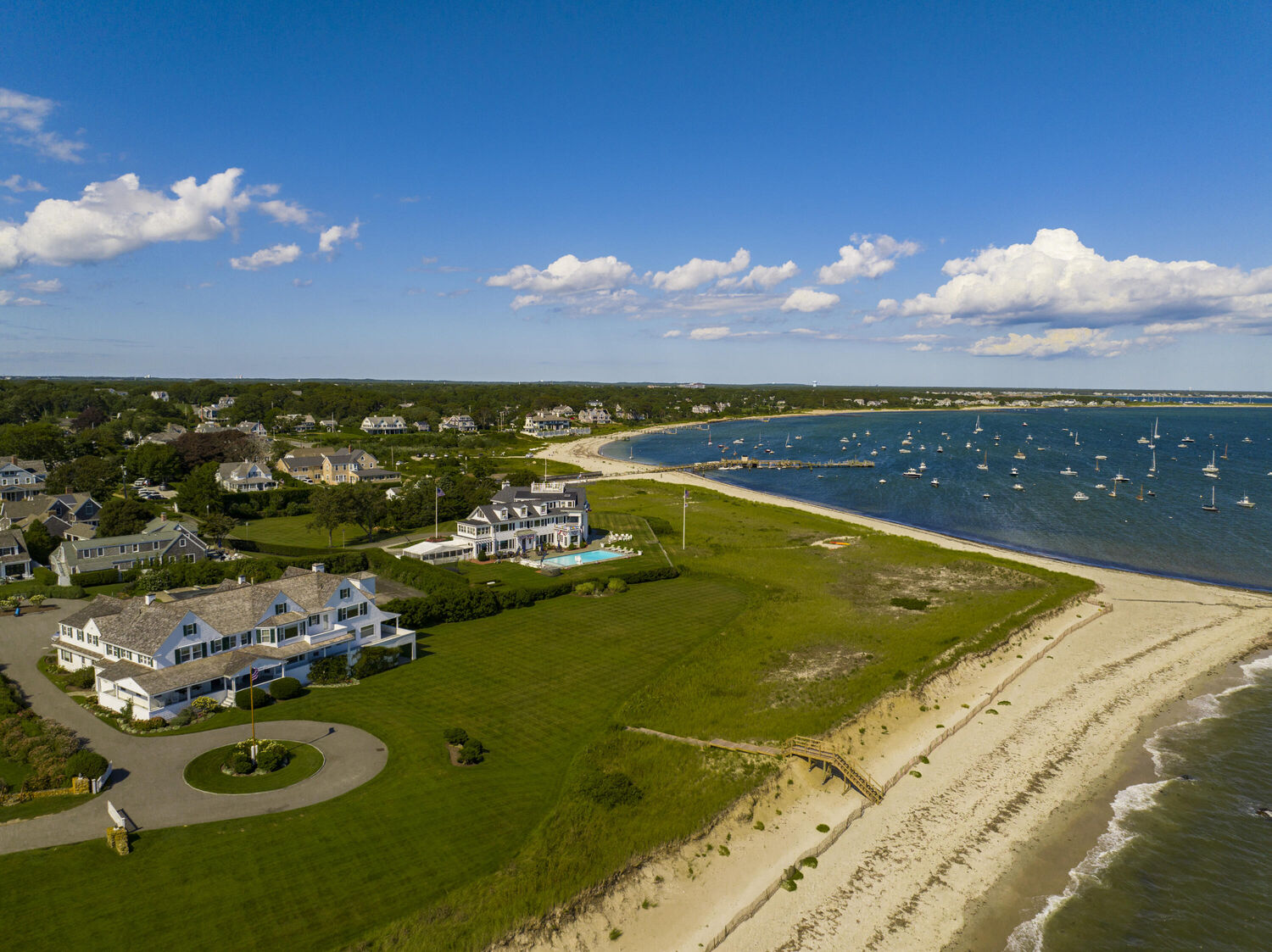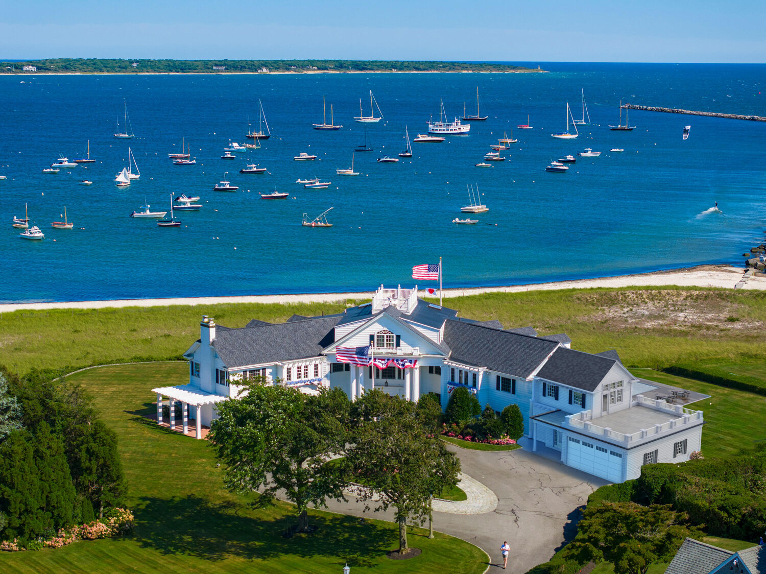 Welcome to Port View, one of New England's most iconic oceanfront properties! Nestled within the exclusive Cape Cod enclave of Hyannis Port, and sited proudly at the helm of the world-renowned Kennedy Compound, this one-of-a-kind coastal home and its famous neighbors have long epitomized a casual but classic American lifestyle. A gated driveway leads past rolling lawns and established landscapes by the legendary Olmstead brothers to reveal an impressive and stately 7 bedroom Main House, with panoramic water views of Hyannis harbor and the Nantucket Sound beyond! The perfect floorplan features large and gracious rooms with tall ceilings and beautiful architectural details throughout, including the fireplaced living and dining rooms, tavern, wood paneled library, sun porches, a third floor game room with mahogany inlay floors, and a widows walk with roof deck. Tremendous outdoor entertaining opportunities surround the large pool, hot tub, firepit and expansive ''wedding lawn'', which overlooks gorgeous dunes and nearly 500' of private beachfront. An icon in every sense, Port View is a pleasure to show, by appointment only.