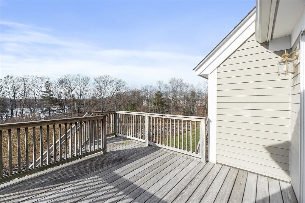 Nestled in the back of Flint Pond Estates this end unit townhome provides serene water views, a first floor main suite and back up generator. The details of this home make it a jewel; true hardwood floors, solid surface countertops in the kitchen and baths and a tiled walk-in shower in the main suite. One of the larger units in the community, this open floor plan is loaded with windows and high ceilings that create a bright inviting haven for both owner and guests. The ample attached two car garage has space to store the items you like convenient to the main living area. The lower level is a full walk out basement that also over looks the pond and has potential for additional finished space. The second floor with two bedrooms, a second full bath and a loft open to the vaulted living room is a haven whether for office, crafts or overnight guests. Another venue to enjoy the pond is through the sliding door from the kitchen to the generous deck.