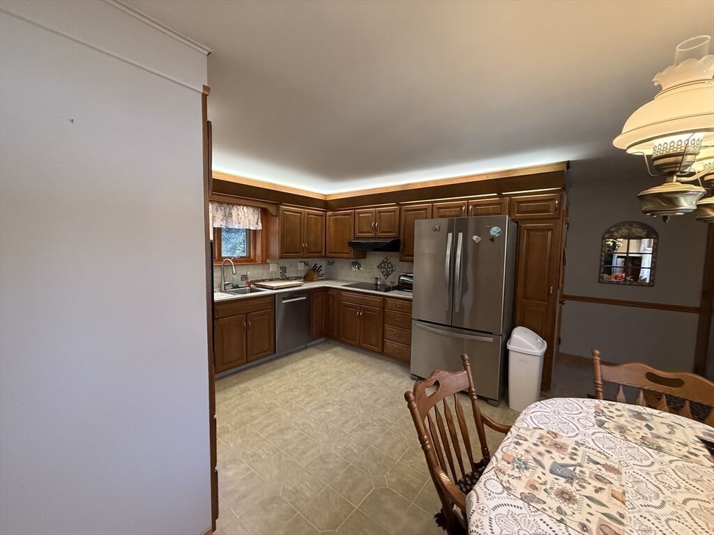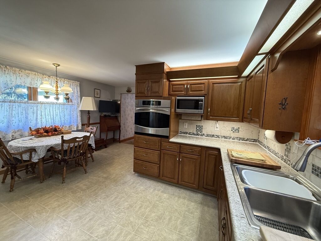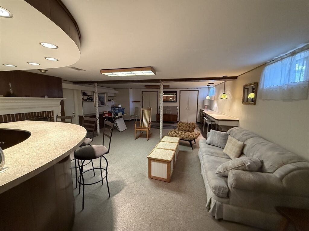 This well maintained Ranch style home offers 3 beds and 1 full 2 half baths, 1442 sq ft of living space on the main level, as well as 450 additional sq ft in the finished basement. The fully applianced kitchen boast beautiful custom cabinetry, a countertop range, wall oven, micro, and dishwasher, as well as solid surface countertops. Harwood floors flow throughout the dining room, living room, hallway, primary and 2nd bedroom. Entertain your guests in the large finished basement, complete with wood fireplace and bar, as well as a laundry area with an additional range and micro. large workshop area You can access your 1 car garage from the mudroom. Enjoy the warmer seasons overlooking your lush backyard from the enclosed porch. Add your own updates to make this solidly built home, your Dream Home Showings begin Sunday Nov. 23.