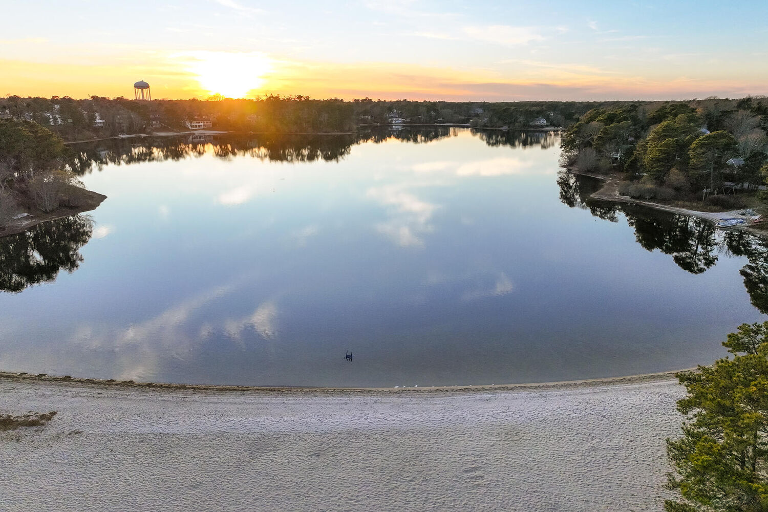 NEW PRICE! Charming, spacious 4-bedroom, 2.5 bath pond front Cape with beautiful hardwood flooring, located in picturesque Great Sand Lakes. Enjoy awesome water views of Kiddies Pond & Buck's Pond (see video), spectacular sunrises & extraordinary sunsets. Stroll down the side yard, to private Kiddies Pond access-great for kayaking & fishing. The back deck, accessible from the charming dining room, opens to the backyard. Enjoy the country kitchen, featuring stainless appliances, rich wood cabinetry and Armstrong flooring...opening to the glorious light-filled, four-season sunroom capturing the stunning outdoors and gentle pond breezes. The east-facing front of the home brings welcoming morning light; the sunroom faces south with all-day sunshine; the west facing back wall frames unforgettable winter sunsets. In the cooler months, cozy-up to the living room's striking granite raised hearth fireplace. The first floor offers a primary BR ensuite...a second BR/office and a full bath just off the hallway. On the second floor...two bedrooms, 1/2 bath & walk-in attic. Full basement & one car garage under provide ample storage & convenience. A Great Sand Lakes GEM
