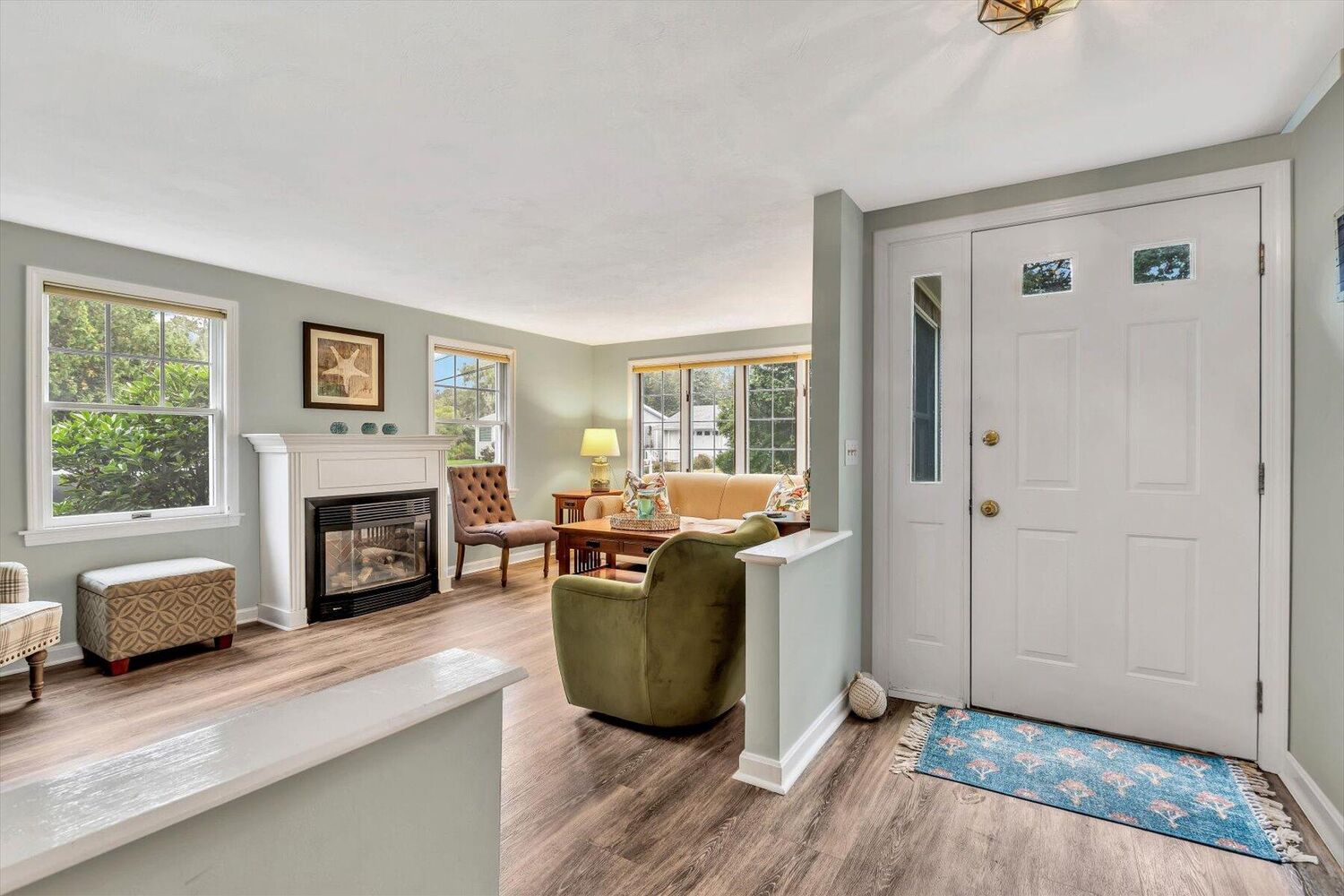 Welcome to your dream retreat at 30 Cove Road, Eastham, MA! This rare gem is nestled within the exclusive Cedarcrest Association, offering access to a deeded beach, private dock, and a mooring (Harbor Master approval required) with access to Town Cove and beyond. Spanning 2,112 square feet, this home offers ample space with four bedrooms and three full bathrooms. The main house hosts 2 bedrooms and 2 full bathrooms and a generous living space--while the separate in-law apartment has two bedrooms, full bath, open living room/kitchen/dining. This set up is ideal for guests, larger groups, privacy, and/or rental income. The moment you step inside to the main house you'll be relaxed by the cool comforting sea blue walls contrasting with white trim, and beautiful newly installed luxury vinyl floors throughout. Enjoy the convenience of a gas fireplace for those chilly Cape Cod nights--relax with a glass of wine and a good book in the jacuzzi tub off the spacious primary bedroom or kick your feet up and gaze at the stars on the deck after a refreshing outdoor shower! The kitchen features nicely contrasting black counter tops and white cabinetry, refrigerator, dishwasher, electric oven* and stove, making it a chef's delight. An additional kitchen in the apartment awaits those who love entertaining or require extra preparation space. The dining room is conveniently located for intimate gatherings or family meals and sits adjacent to the outdoor dining area offering additional space. The floor plan is completed with a spacious living room as well as a den/library with custom built in shelves and an opportunity to find time for quiet contemplation.Step outside to discover a backyard oasis complete with a deck, barbecue area, access to the in-law apartment and outdoor shower perfect for enjoying the serene surroundings. The front yard is beautifully landscaped, and the property includes a 2 car garage with additional storage space above. Experience year-round comfort with central air conditioning, forced air, and gas heat. A full basement provides additional storage and space. With its ideal location and exceptional features, 30 Cove Rd is more than a house; it's a place to call home. Don't miss the opportunity to make it yours!