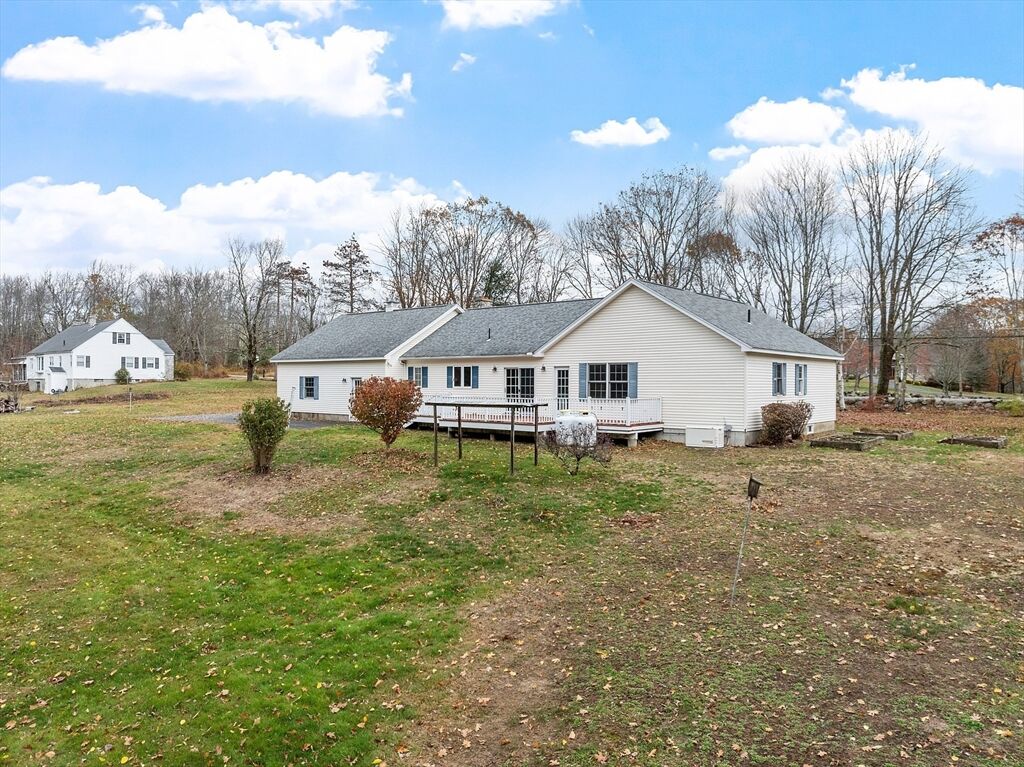 Welcome home to this beautifully designed ranch offering the ease of single-level living in a serene country setting near the Royalston line. This 3-bedroom, 2-bath home was thoughtfully crafted for comfort, accessibility, and modern living. The open floor plan flows seamlessly from the bright living area with hardwood floors to the spacious kitchen featuring a center island and pantry. Enjoy a large primary suite with a walk-in closet and direct deck access. Wide hallways, a handicap-accessible shower, and first-floor laundry make daily life simple and convenient. Set on over 2 private, level acres with a generous flat yard—perfect for gardening or relaxing outdoors. The attached 2-car insulated garage adds year-round ease. Equipped with whole house generator system. Just minutes to shopping, medical facilities, golf, and major routes, this is the ideal place to simplify and settle into your next chapter.